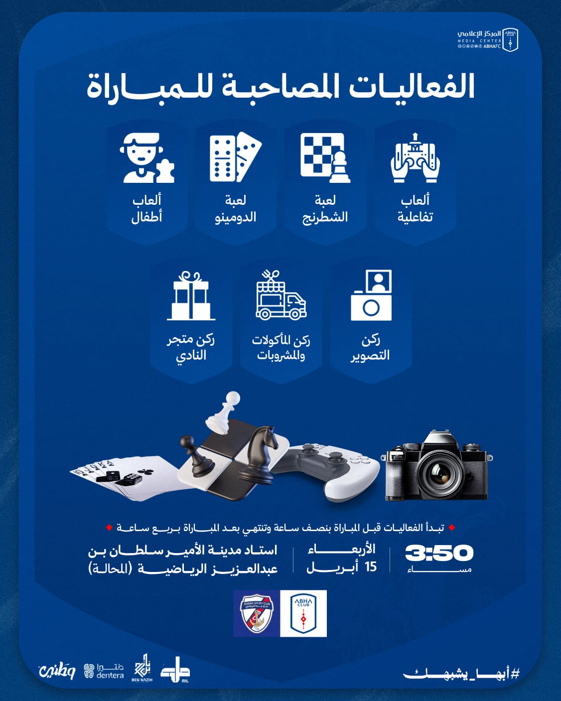 الفعاليات الترفيهية المُصاحبة لمباراة أبها وجدة في المحالة مساء غدٍ الأربعـاء 🎪